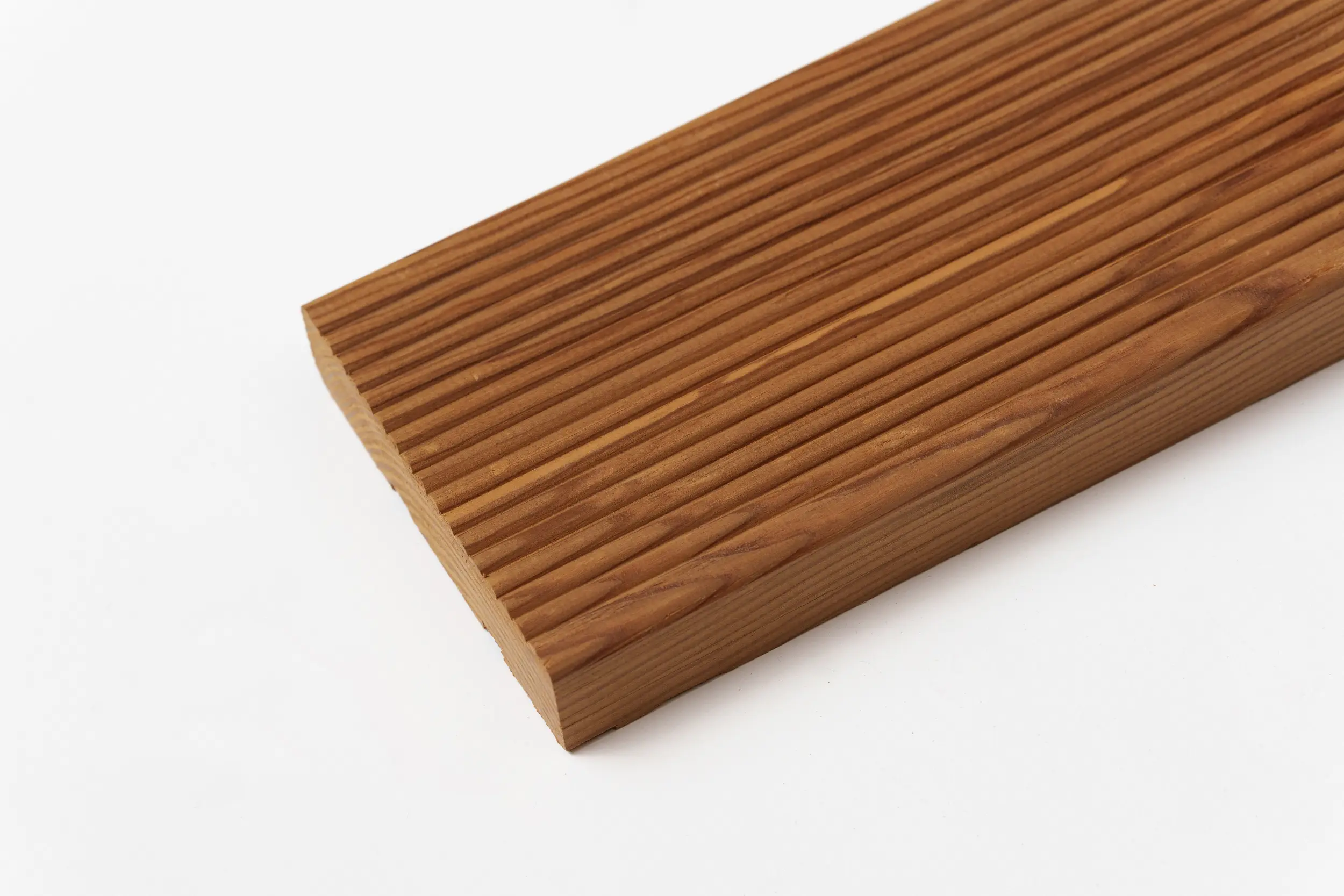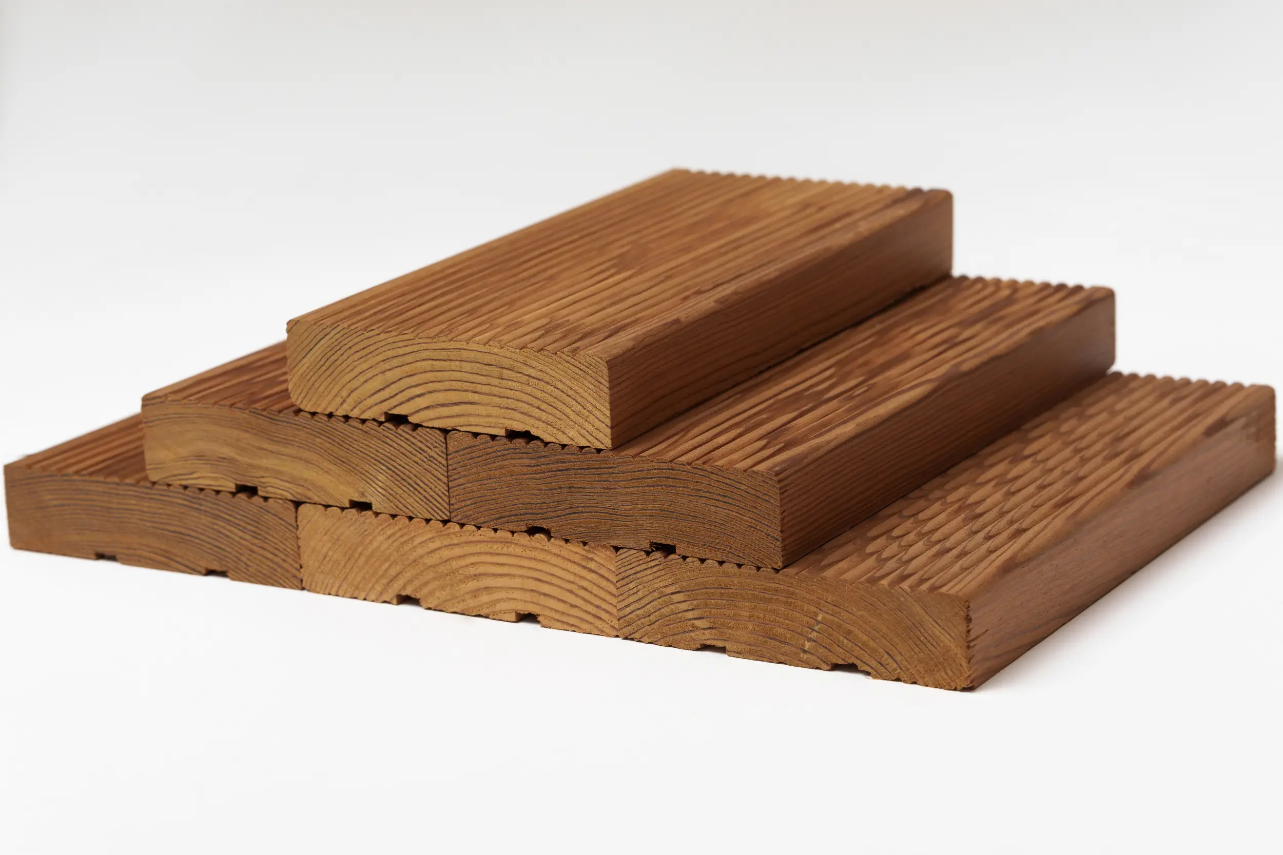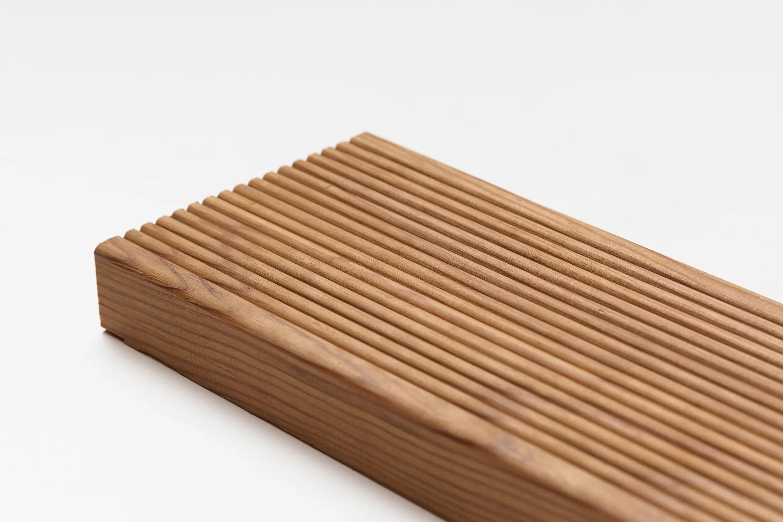 - Einzigartige Optik: Die Thermobehandlung prägt die Struktur des Holzes und verleiht ihm eine unverwechselbare Optik mit warmen Farbtönen.