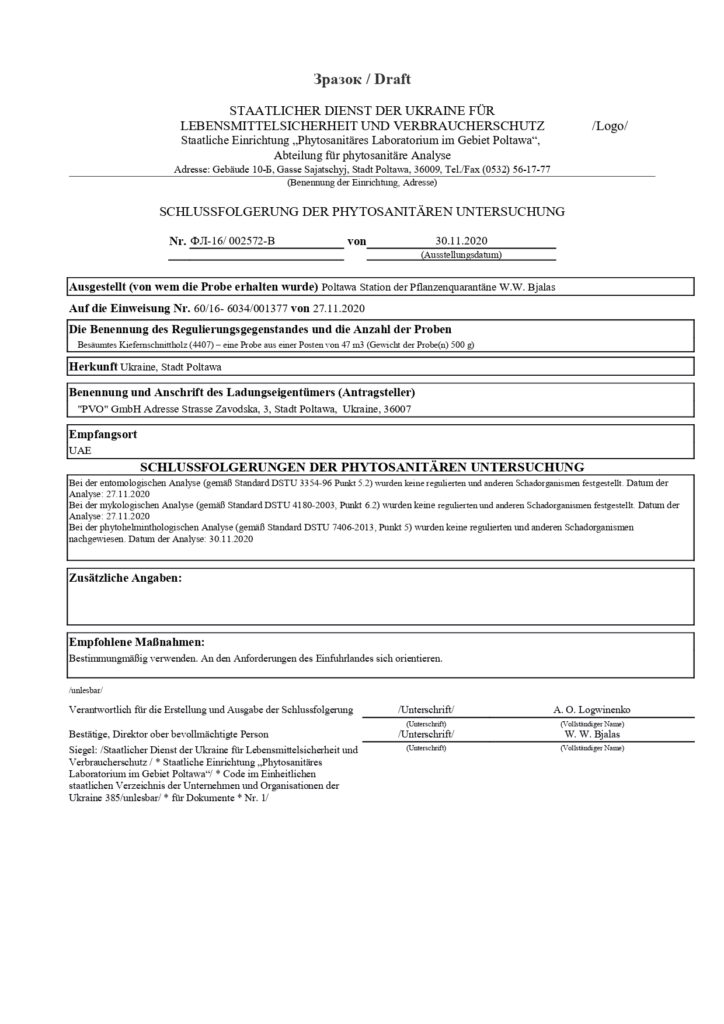 PHYTOSANITÄREN UNTERSUCHUNG
